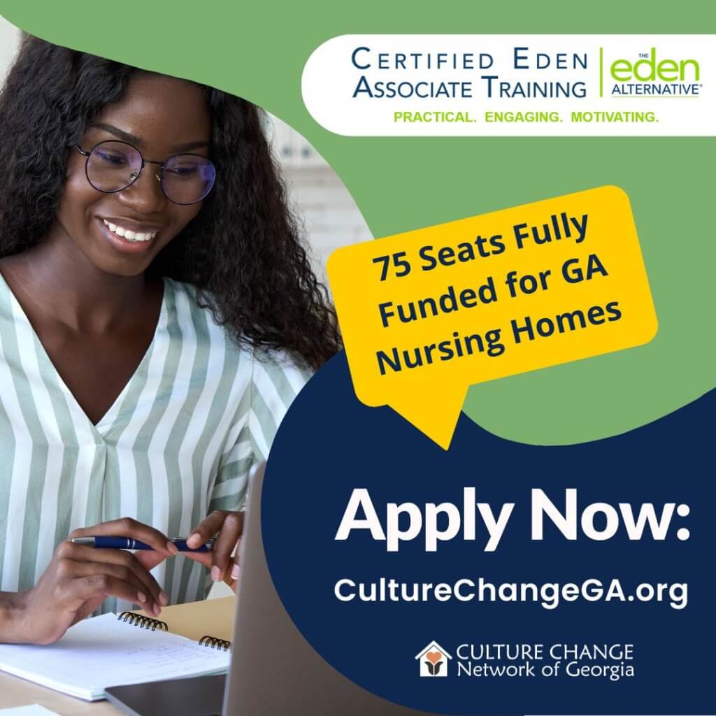 The Eden Alternative® is a principle-centered approach to culture change, and the Certified Eden Associate Training is the most widely practiced, comprehensive approach to person-centered/person-directed care. More than 50,000 people have gone through this training world-wide, with more than 1,800 Certified Eden Associates in GA.